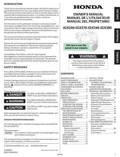 Honda IGX Series IGX390 Operators Service Manual