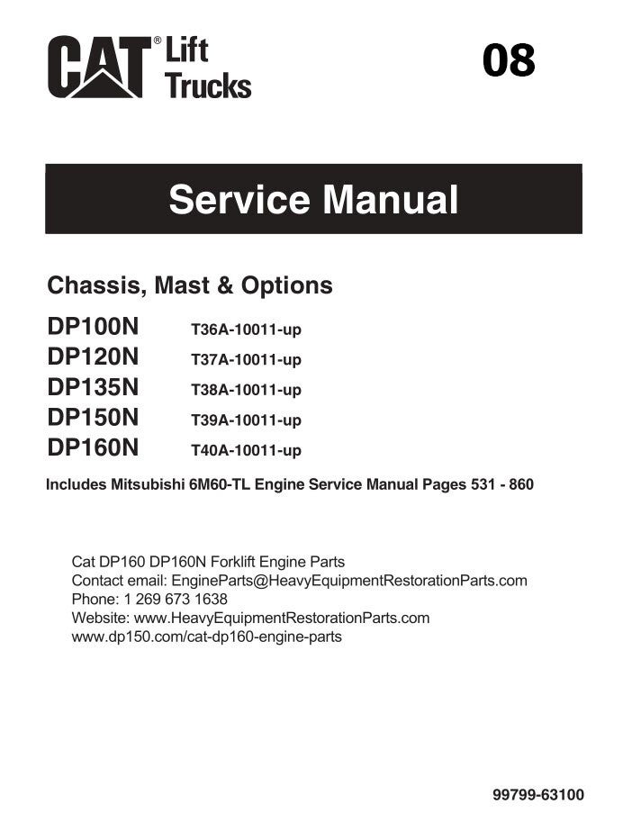 ++08 Caterpillar DP100N, DP120N, DP135N, DP150N, DP160N Forklift Service Repair Manual 861 pages