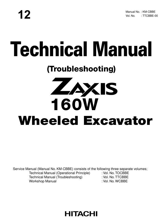 ! 12 Hitachi Zaxis ZX160W Technical Manual 414 pages