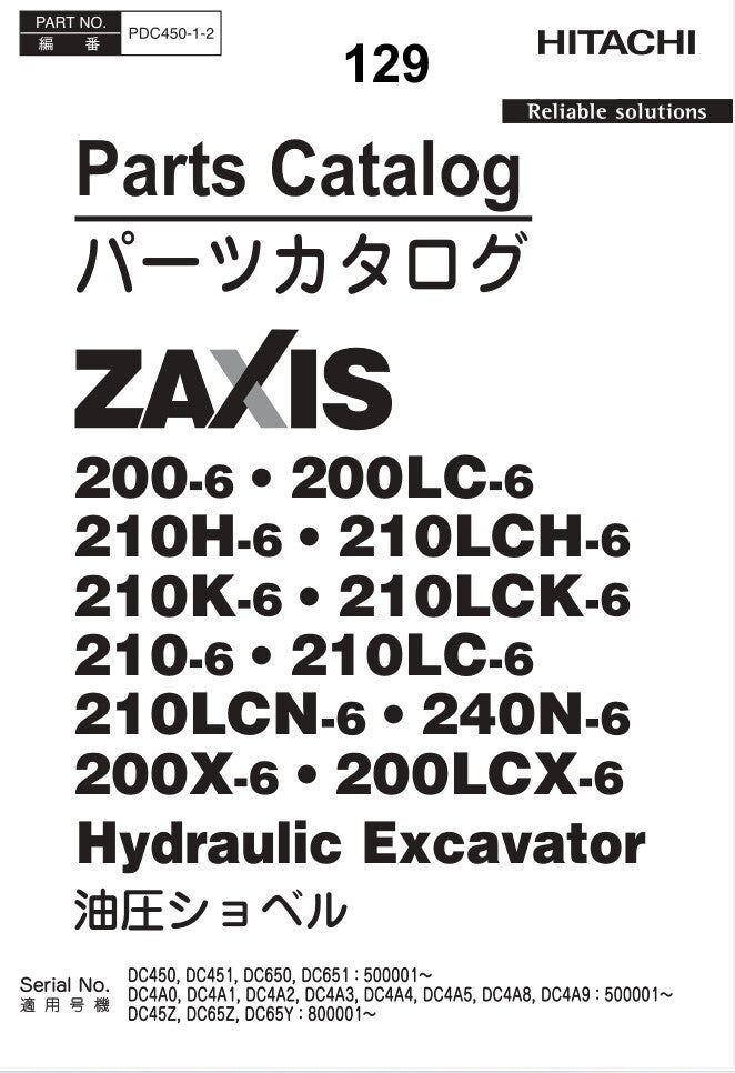 129 Hitachi ZX200-6, ZX210-6 Series Parts Manual 1209 pages