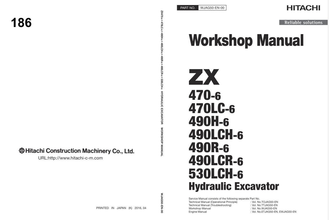*+ 186 Hitachi ZX470-6, ZX490-6, ZX530-6 Series Workshop Manual and Diagrams 724 pages