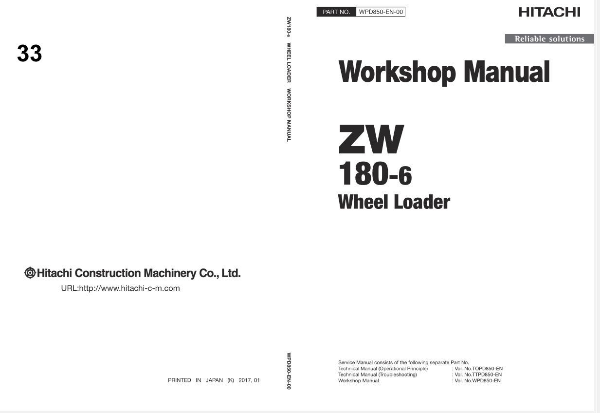 33D 33 Hitachi ZW180-6 ZW180PL-6 Wheel Loader Workshop Manual 2135 pages