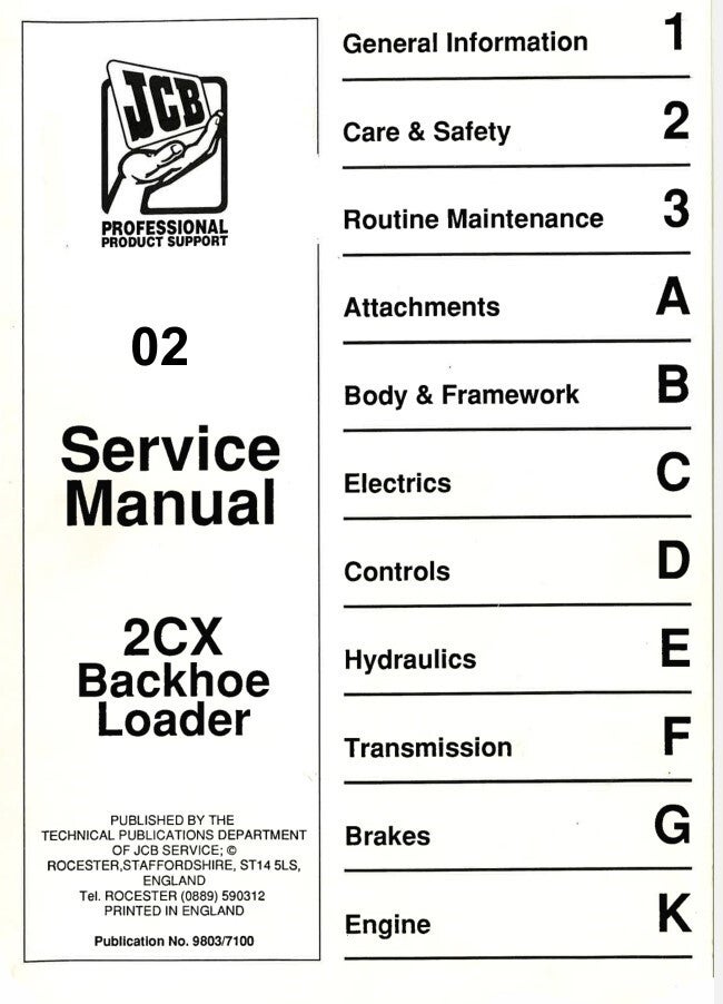 02 JCB 2CX Backhoe Loader Service Repair Manual 341 pages