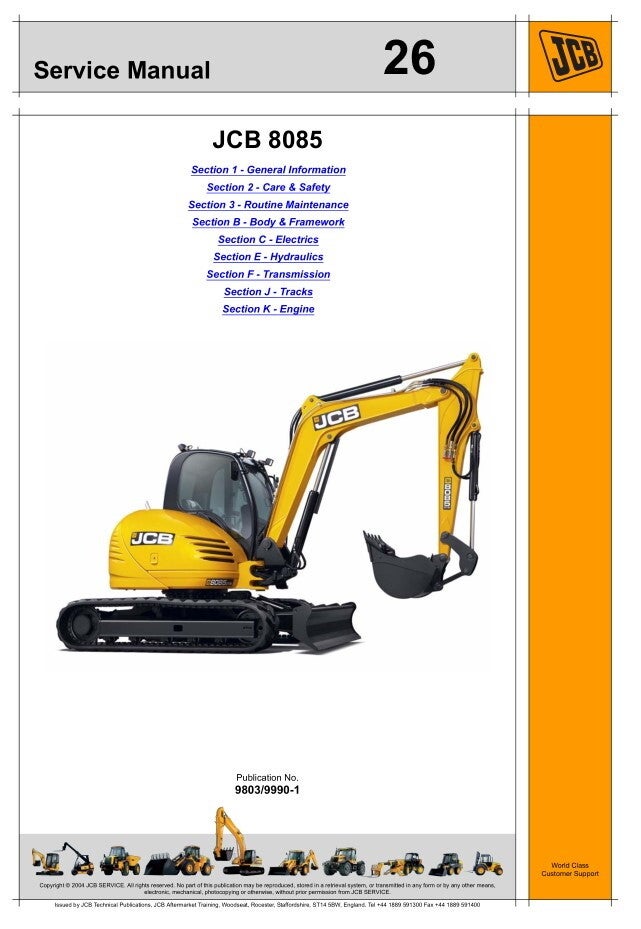 26 JCB Mini Excavator 8085 Service Repair Manual 484 pages
