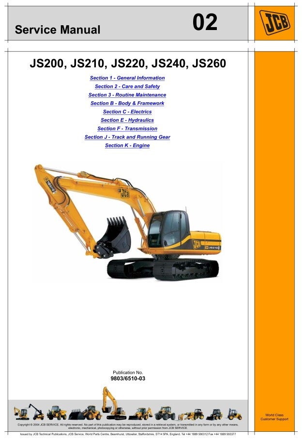 02 JCB Excavator JS200, JS210, JS220, JS240, JS260 Service Repair Manual 1353 pages