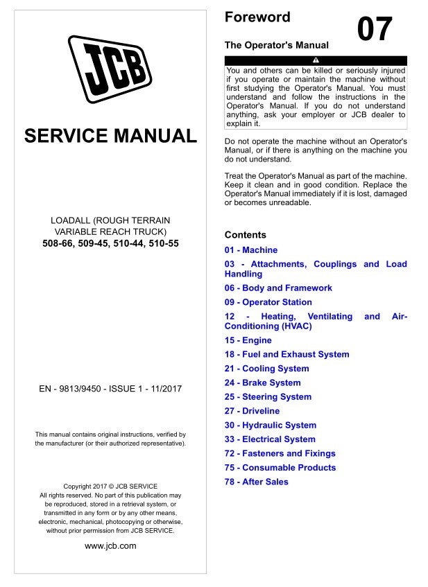 07 JCB 508-66, 509-45, 510-44, 510-55 Service Repair Manual 2695 pages