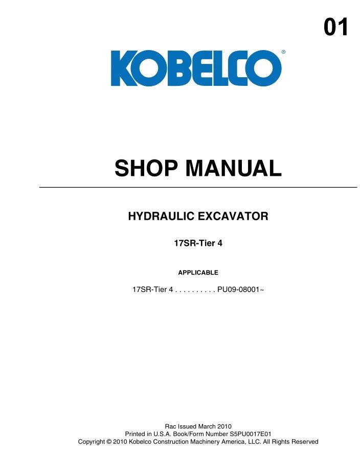 01 Kobelco 17SR Excavator (Tier 4 ) Workshop Manual 710 pages