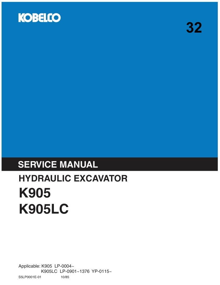 KB 32 Kobelco K905, K905LC Excavator Service Repair Manual 816 pages
