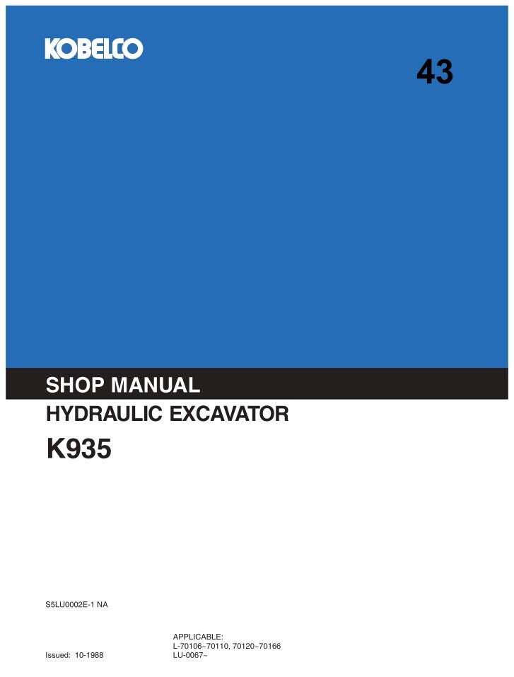 KB 43 Kobelco K935 Excavator Workshop Repair Manual 730 pages