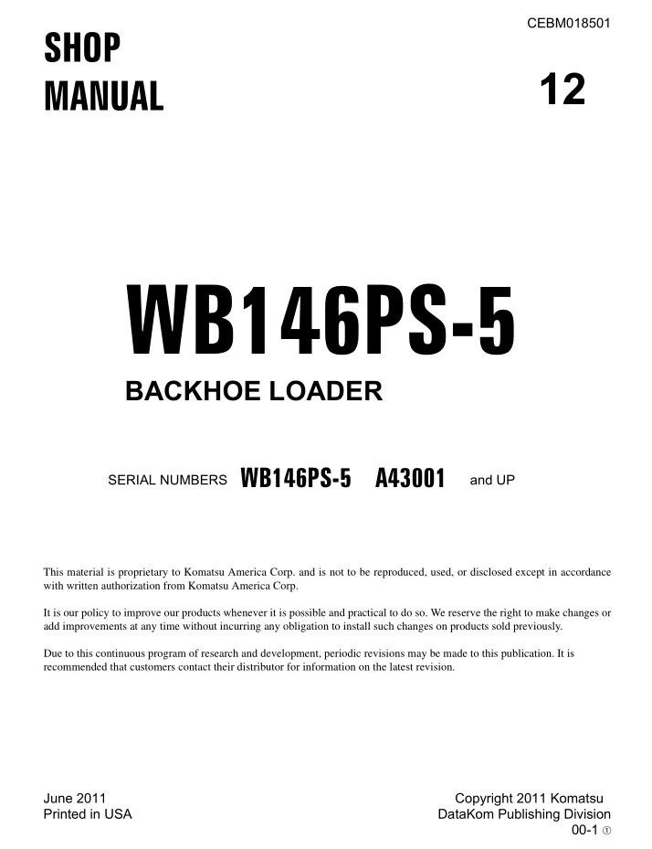 12 Komatsu WB146PS-5 USA Backhoe Loader Workshop Manual 567 pages