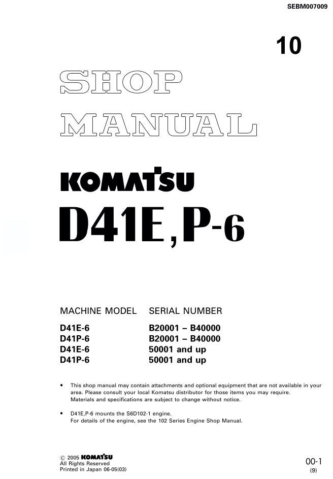 KM 10 Komatsu D41E-6 , D41P-6 Bulldozer Workshop Manual 676 pages
