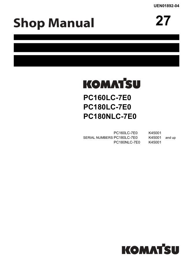 KM 27 Komatsu PC160LC-7E0, PC180LC-7E0, PC180NLC-7E0 Workshop Repair Manual 957 pages