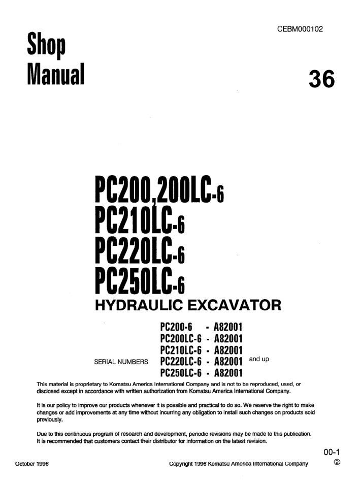 KM 36 Komatsu PC200-6 PC200LC-6 PC210LC-6 PC220LC-6 PC250LC-6 Excavator Workshop Manual 710 pages