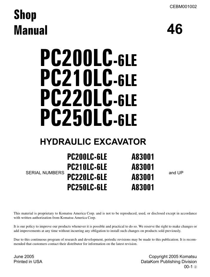KM 46 Komatsu PC200LC-6LE, PC210LC-6LE, PC220LC-6LE, PC250LC-6LE Workshop Repair Manual 877 pages