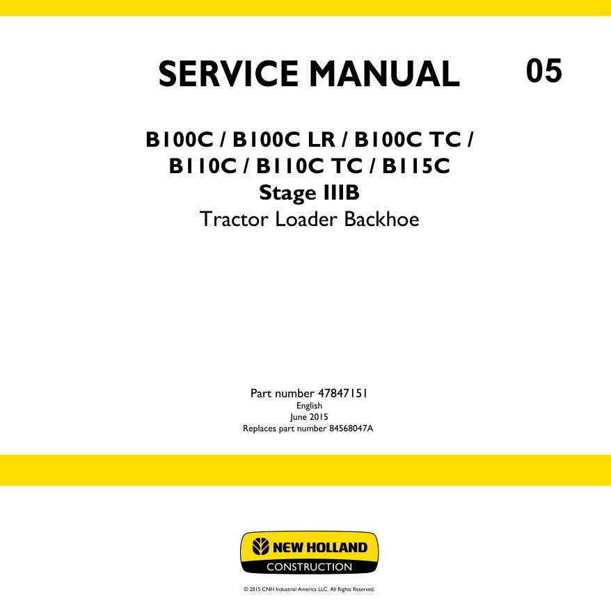 NHB 05 NEW HOLLAND B100C, B100CLR, B100CTC, B110C, B110CTC, B115C Loader Service Repair Manual 2095 pages