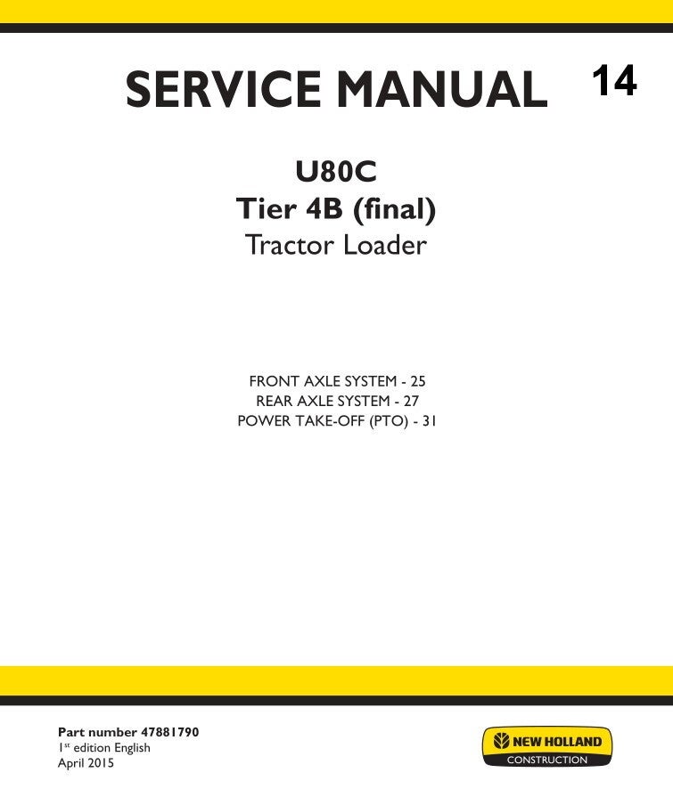 NHB 14 New Holland U80C Tier 4B (final) Tractor Loader Service Manual (Part # 47881790) 272 pages