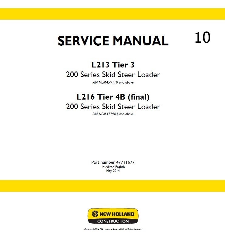 10 NEW HOLLAND Skid Steer L213, L216 Tire 4B Service Repair Manual 2332 pages