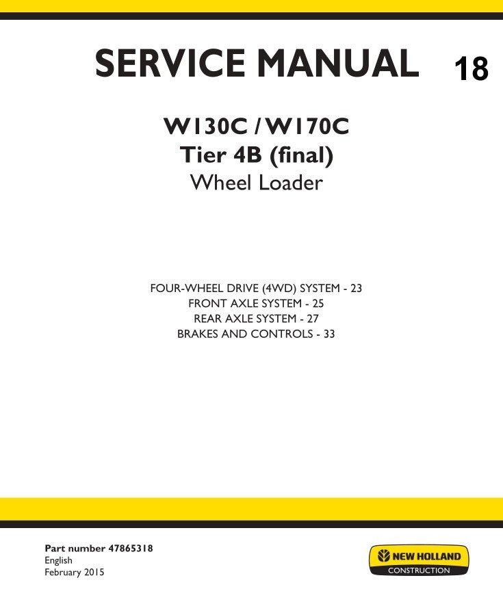 18 NEW HOLLAND W130C, W170C Loader Tier 4B Service Repair Manual 389 pages