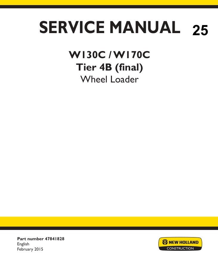 NHB 25 NEW HOLLAND W130C, W170C Wheel Loader Service Repair Manual 2709 pages
