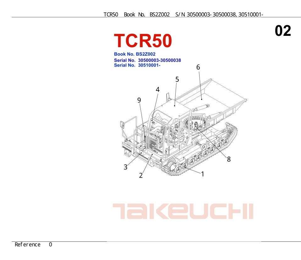 TK 02 Takeuchi TCR50 Crawler Dumper Parts Catalog 274 pages