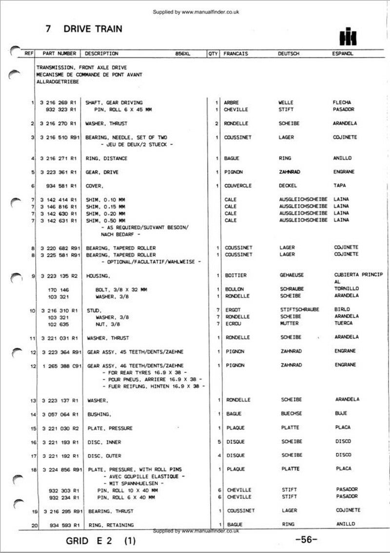 Case IH 956 1056 956XL 1056XL Tractors Parts Manual