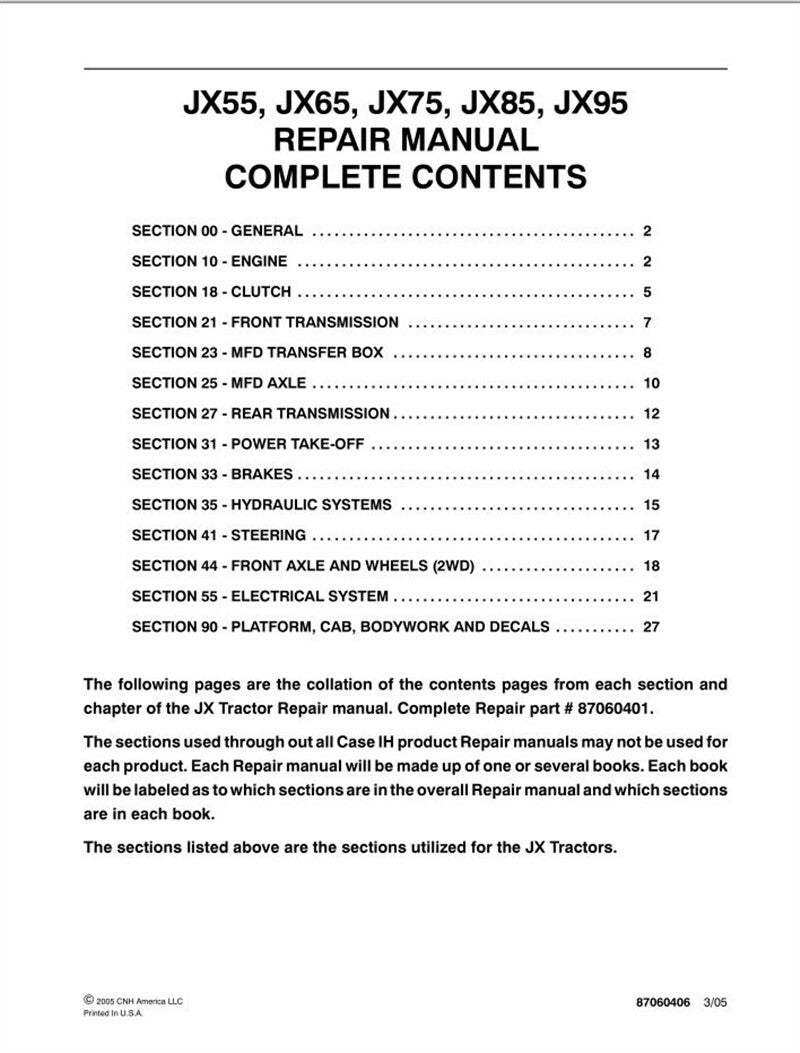 Case IH JX55 JX65 JX75 JX85 JX95 Workshop Manual