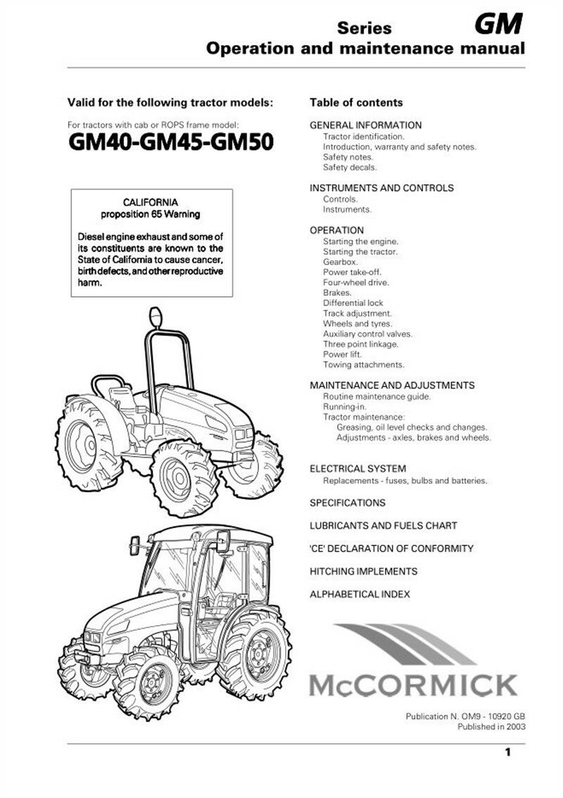 McCormick GM 40 45 50 Series Tractors Operators Manual