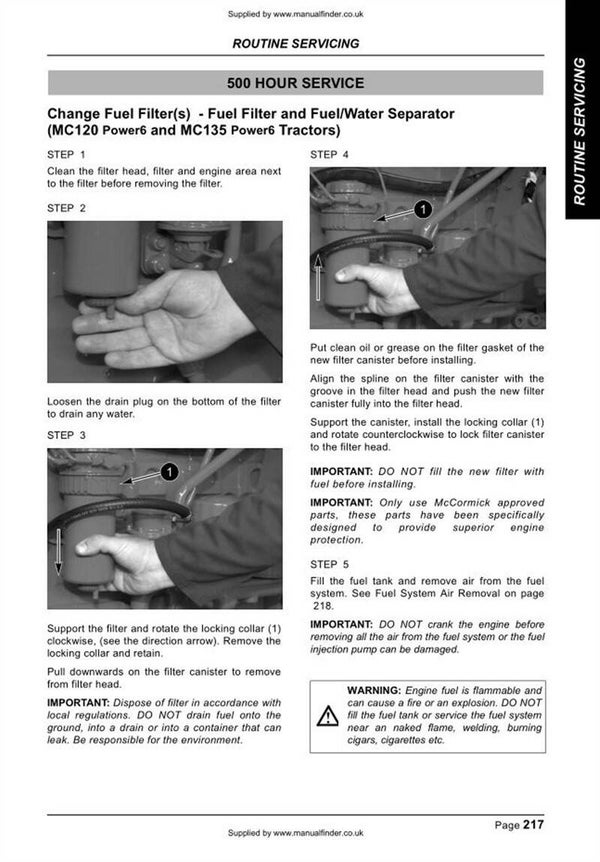 McCormick MC 95 105 115 120 135 Tractors Operators Manual