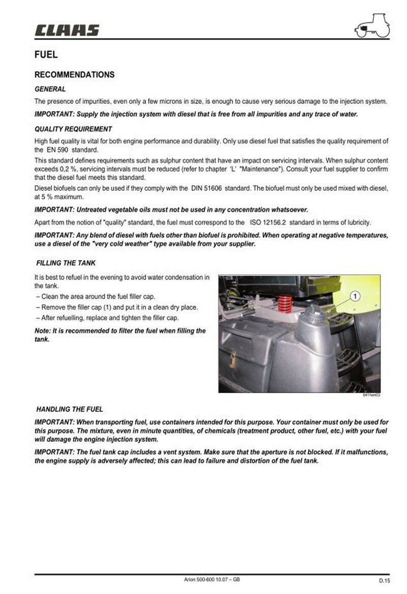 Claas Arion 510 520 530 540 610 620 630 640 Tractor Opps and Maintenance Manual