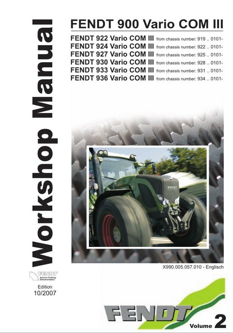 Fendt 900 Vario Com3 922 924 927 930 933 936 Vol 1 and 2 Workshop Manual