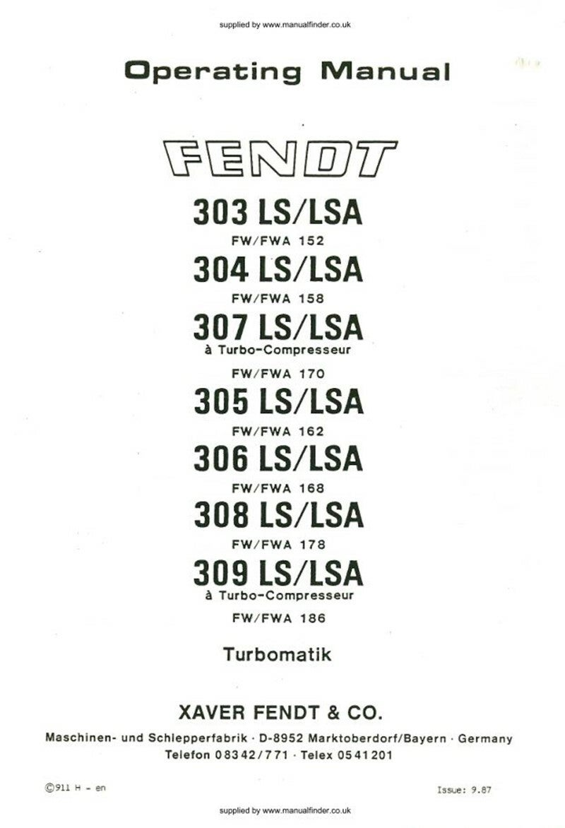 Fendt Farmer LS LSA 303 304 305 306 307 308 309 Operators Manual