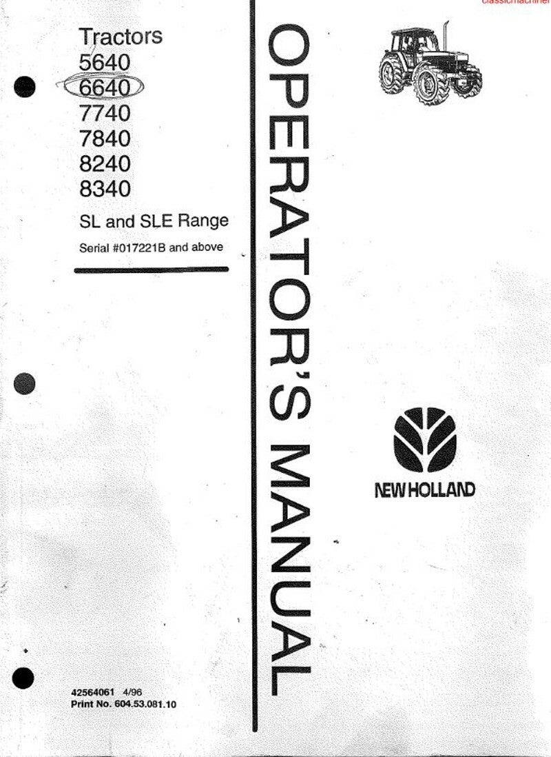 New Holland 40 Series 5640 6640 7740 7840 8240 8340 Operators Manual