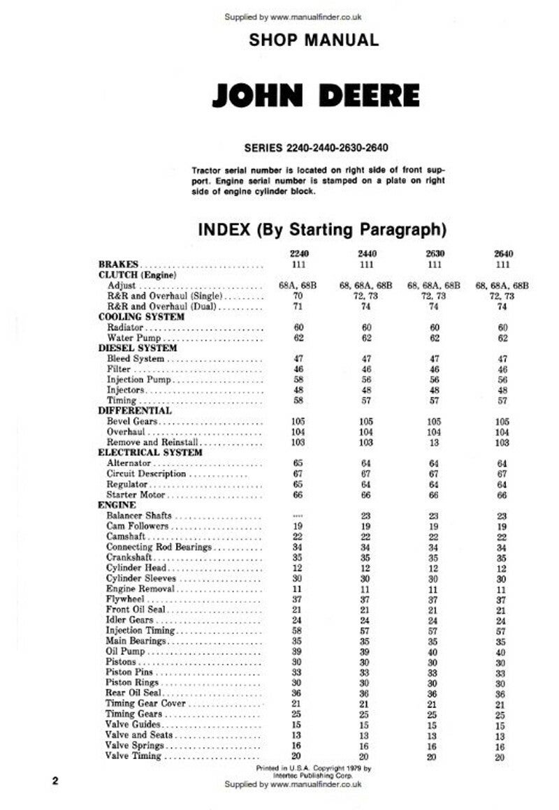 John Deere 2240 2440 2630 2640 models TMM Tractors Workshop Manual