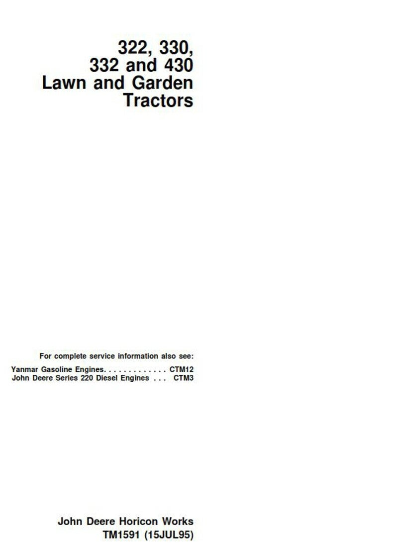 John Deere 322 330 332 430 Lawn and Garden Tractors Workshop Manual