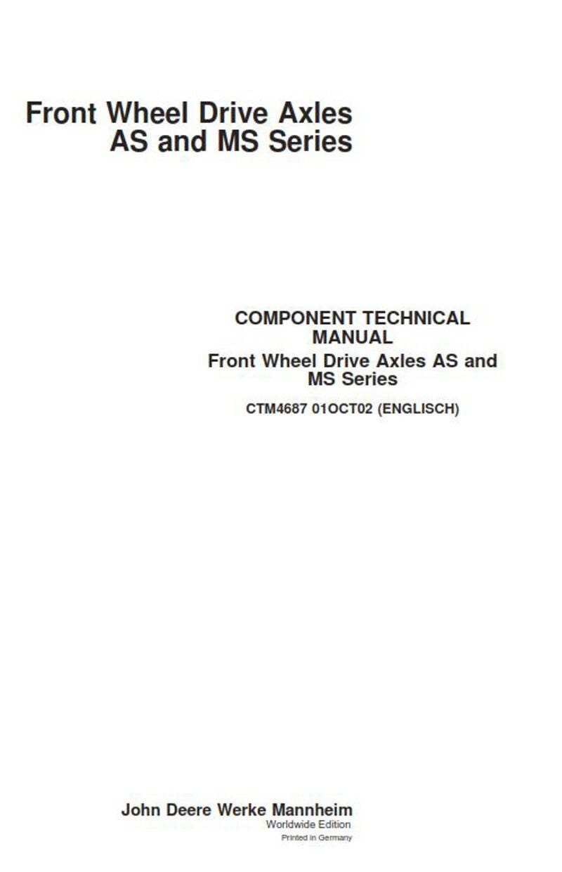 John Deere Front Wheel Drive Axles AS and MS series Workshop Manual