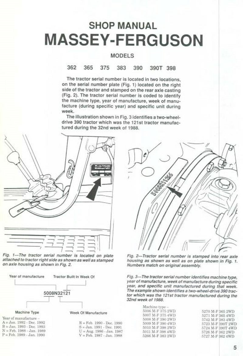 Massey Ferguson 362 365 375 383 390 390T 398 TMM Workshop Manual