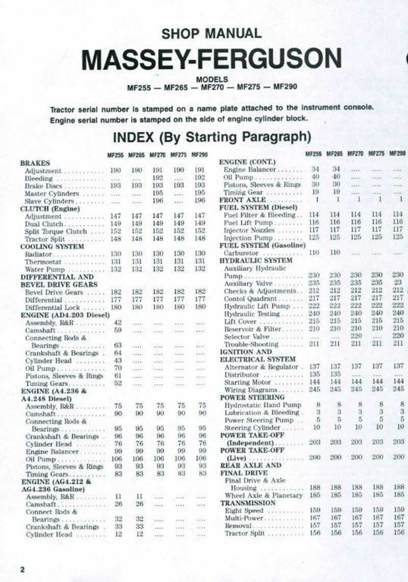 Massey Ferguson 255 265 270 275 290 TMM Workshop Manual