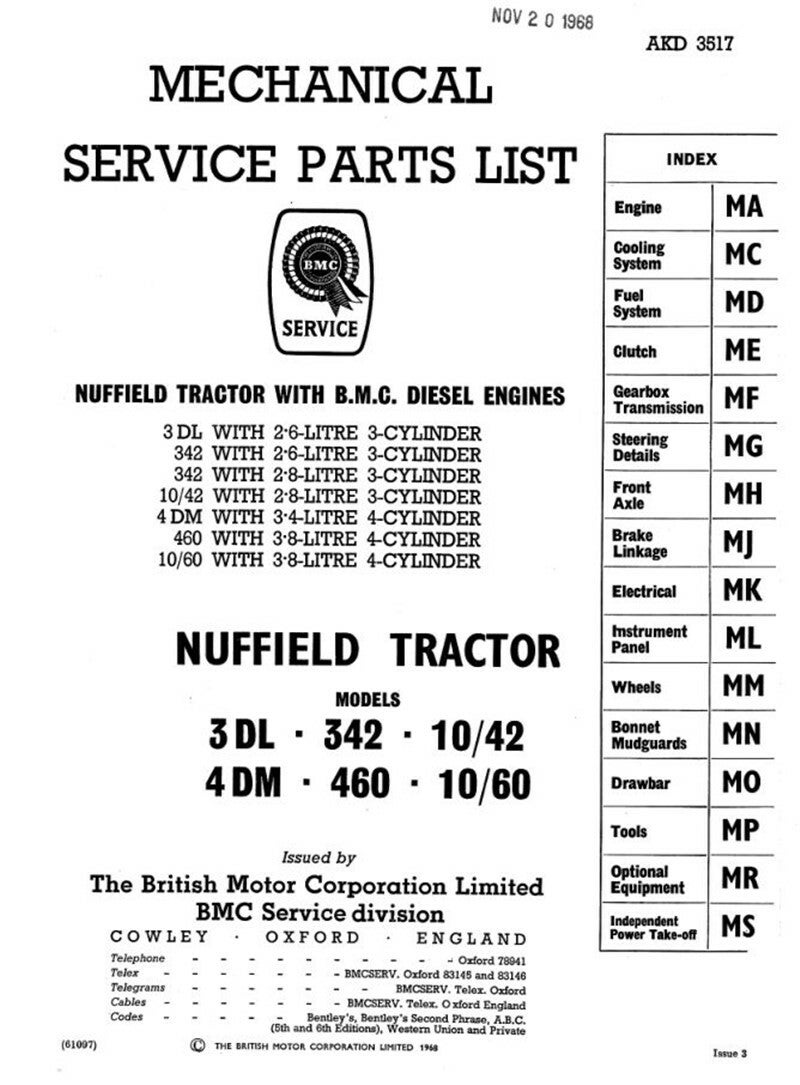 Nuffield 3DL 342 10/42 4DM 460 10/60 Tractor Parts Manual