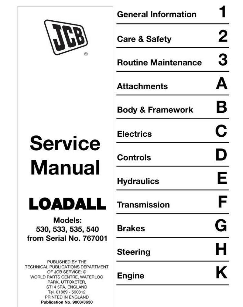 JCB 530 533 535 540 Loader from no 767001 Workshop Manual