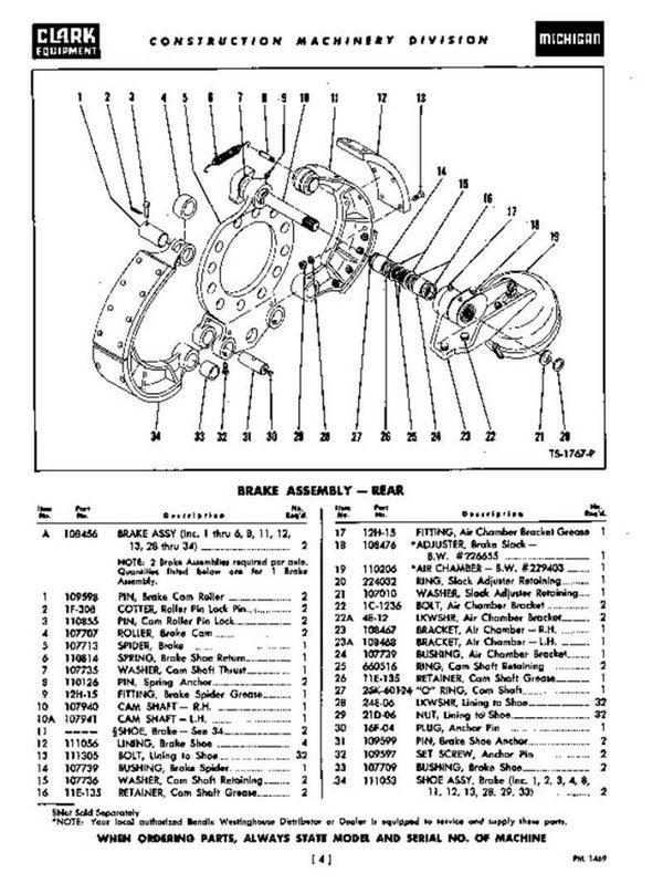 Michigan Clark 210 Tractor Wagon Rear Dump Parts Manual