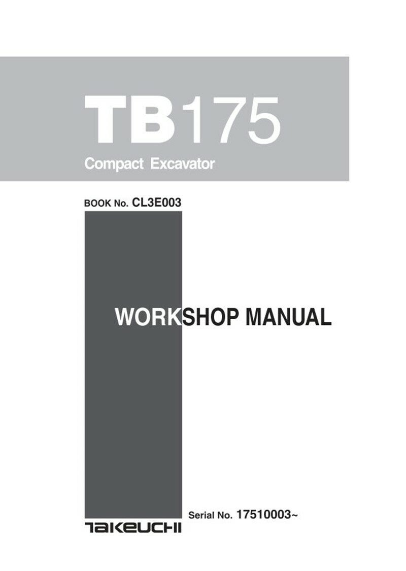 Takeuchi TB175 Excavator Workshop and Parts Manuals Set of 3 Manuals