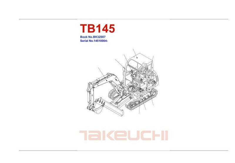 Takeuchi TB145 Excavator Workshop and Parts Manuals Set of 3 Manuals