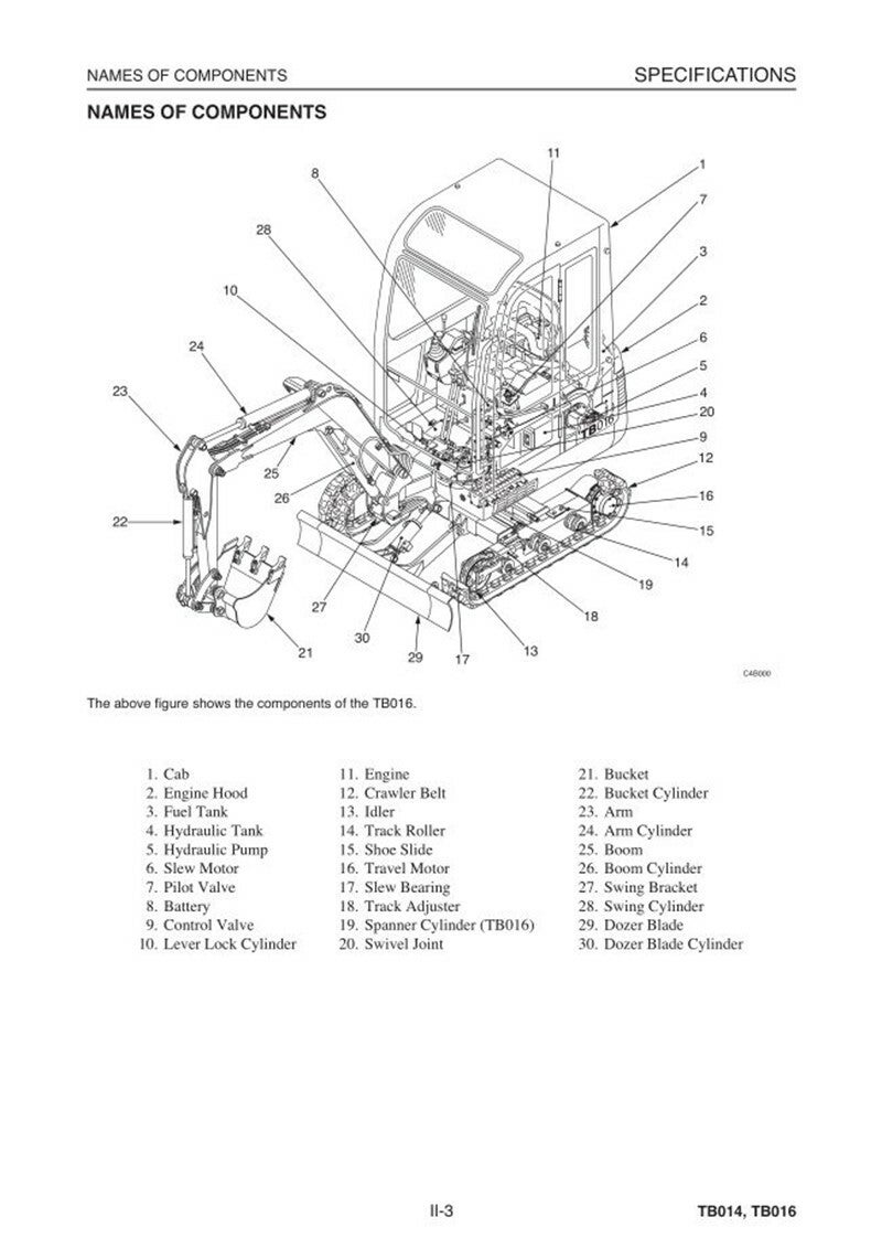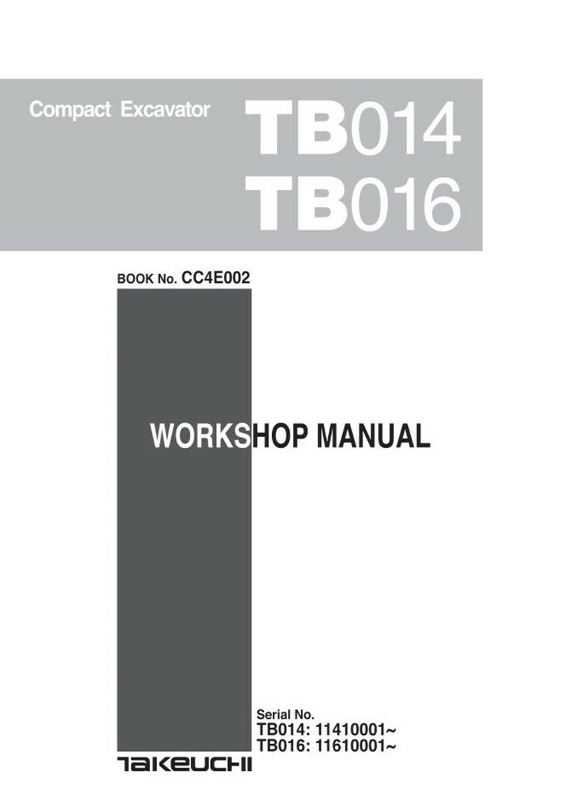 Takeuchi TB014 Tracked Excavator Workshop and Parts Manuals Set of 3 Manuals