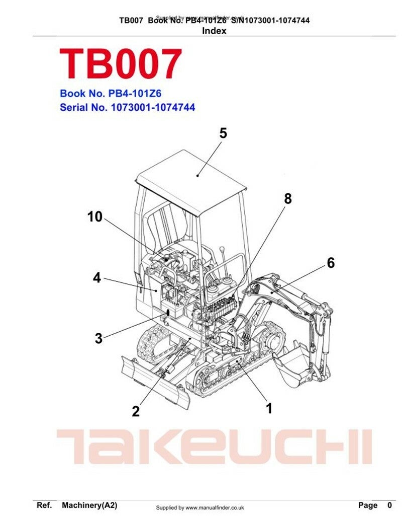 Takeuchi TB007 Excavator Workshop and Parts Manuals Set of 2 Manuals