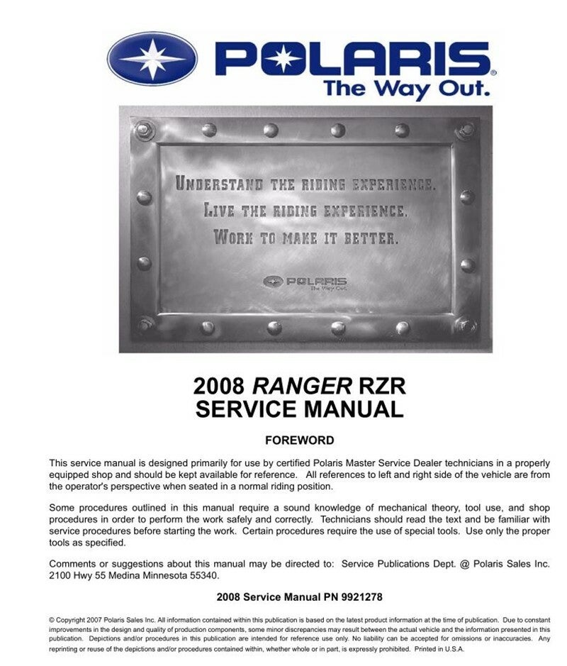 Polaris Ranger RZR Service Repair Manual