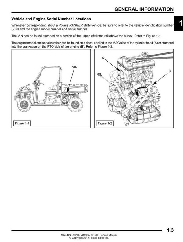 Polaris Ranger 2013 EPS 900 EPS XP Service Repair Manual
