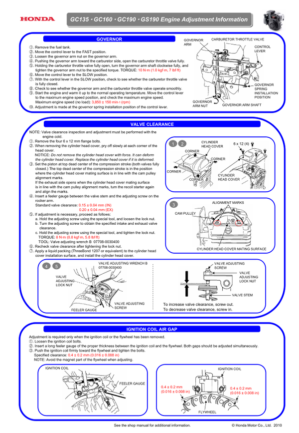 Honda GC Series Engines GC160-GCAHA Owners Service Manual
