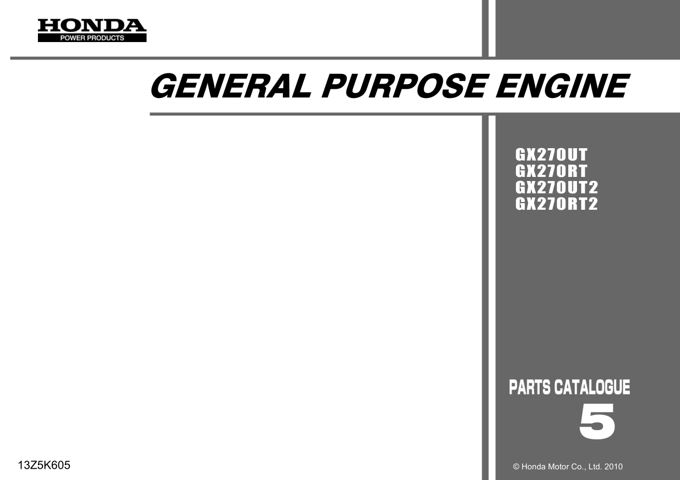 Honda GX Series GX270UT RT UT2 RT2 code GCAJT GCBGT Parts Manual
