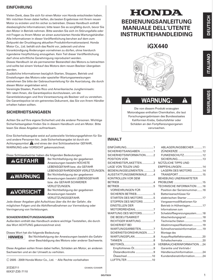 Honda IGX Series IGX440 Operators Service Manual
