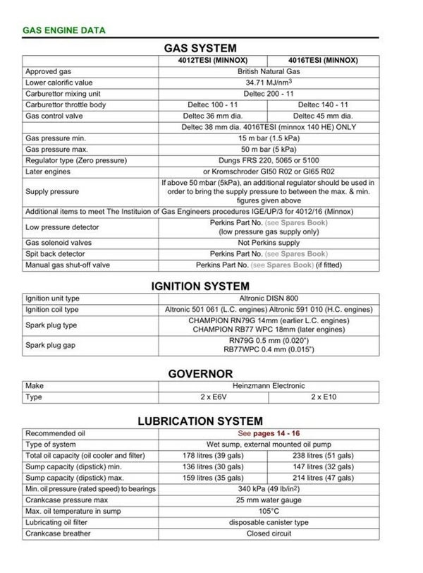 Perkins 4012 and 4016 Gas Engine Operators Manual